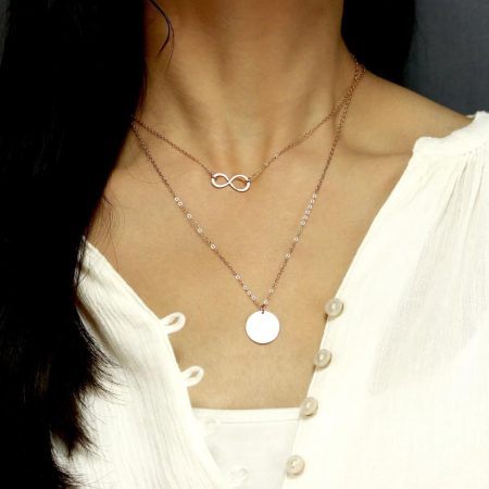 Disc and Infinity Layering Necklace Set of 2