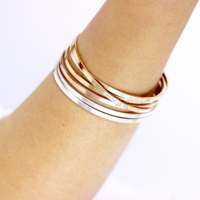 Cuff Bracelet, Personalized Inspirational Bracelet, Dainty Mantra Bracelet Band, Phrase Cuff Bracelet, Meaningful Jewelry, Coordinate, Name, Word, Personalized Bracelet for Couples, Personalized Bracelet Name. Cuff Bracelet Sterling Silver and Gold