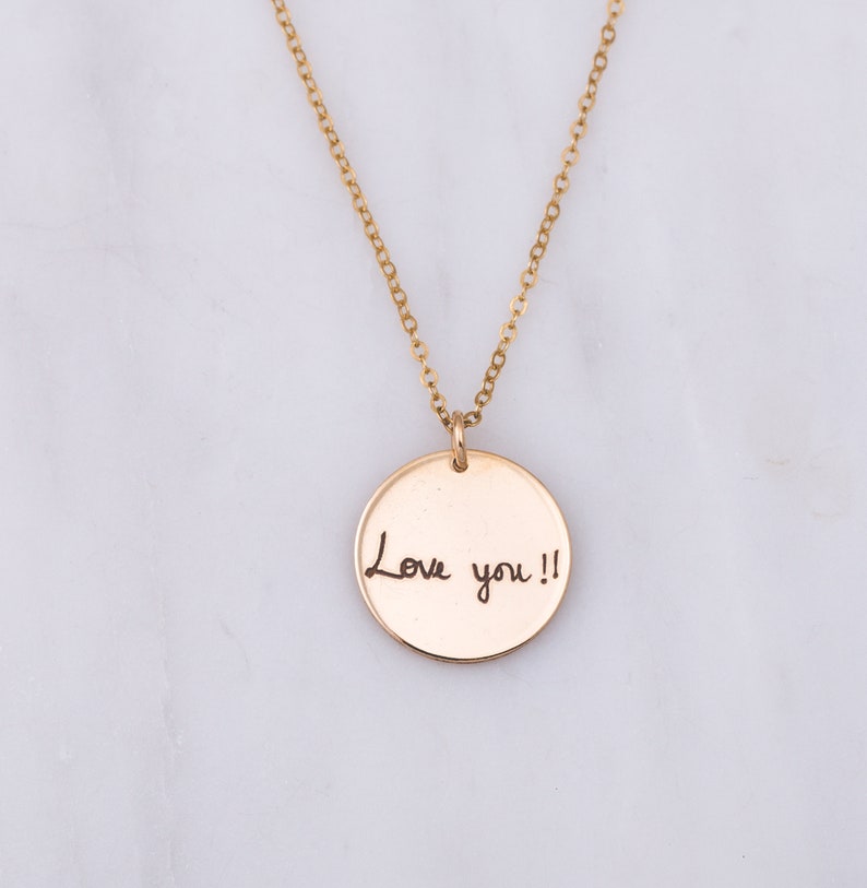 This necklace will make a perfect keepsake for anyone, turning your loved one’shandwritten into a permanent reminder that you care with our quality disc jewelry.
