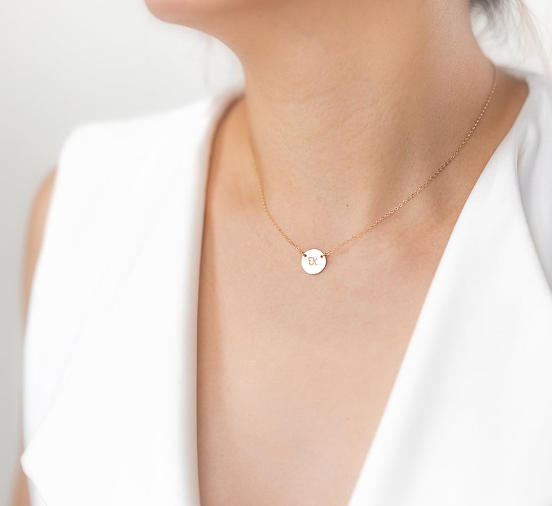 Custom Initial Necklace, Solitary Tiny Disc Charm Sterling Silver Necklace, Simple Daily Jewelry, Birthday, Bridesmaid Necklace, Cute Necklace for Girlfriend, Personalized Necklace for Mom.If you’re looking for what to get for mother’s day get this. It can be a mother’s day gift for grandma or Mother’s day gift DIY.