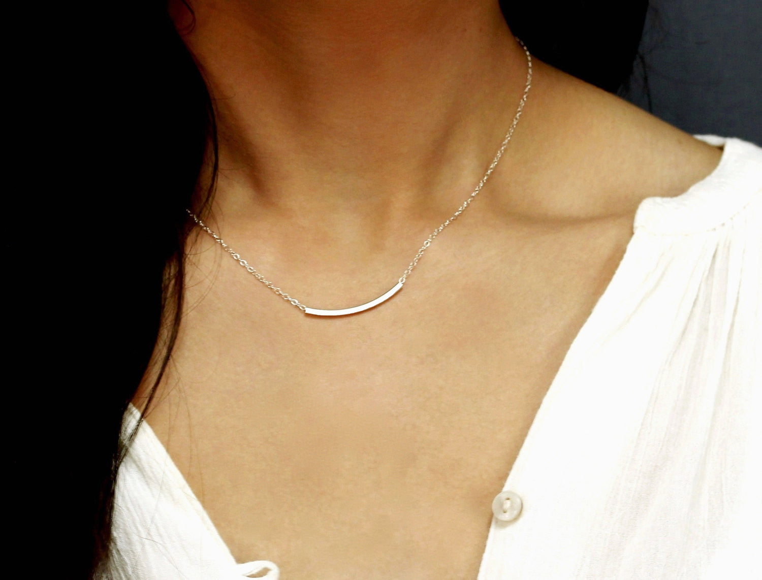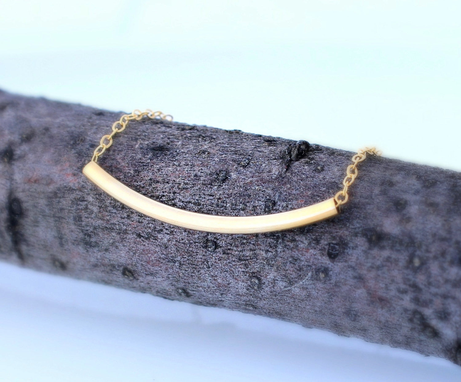 14K Gold-filled, Sterling Silver, Rose Gold Thin Bar Layering Necklace, Curved Tube Bar Necklace.