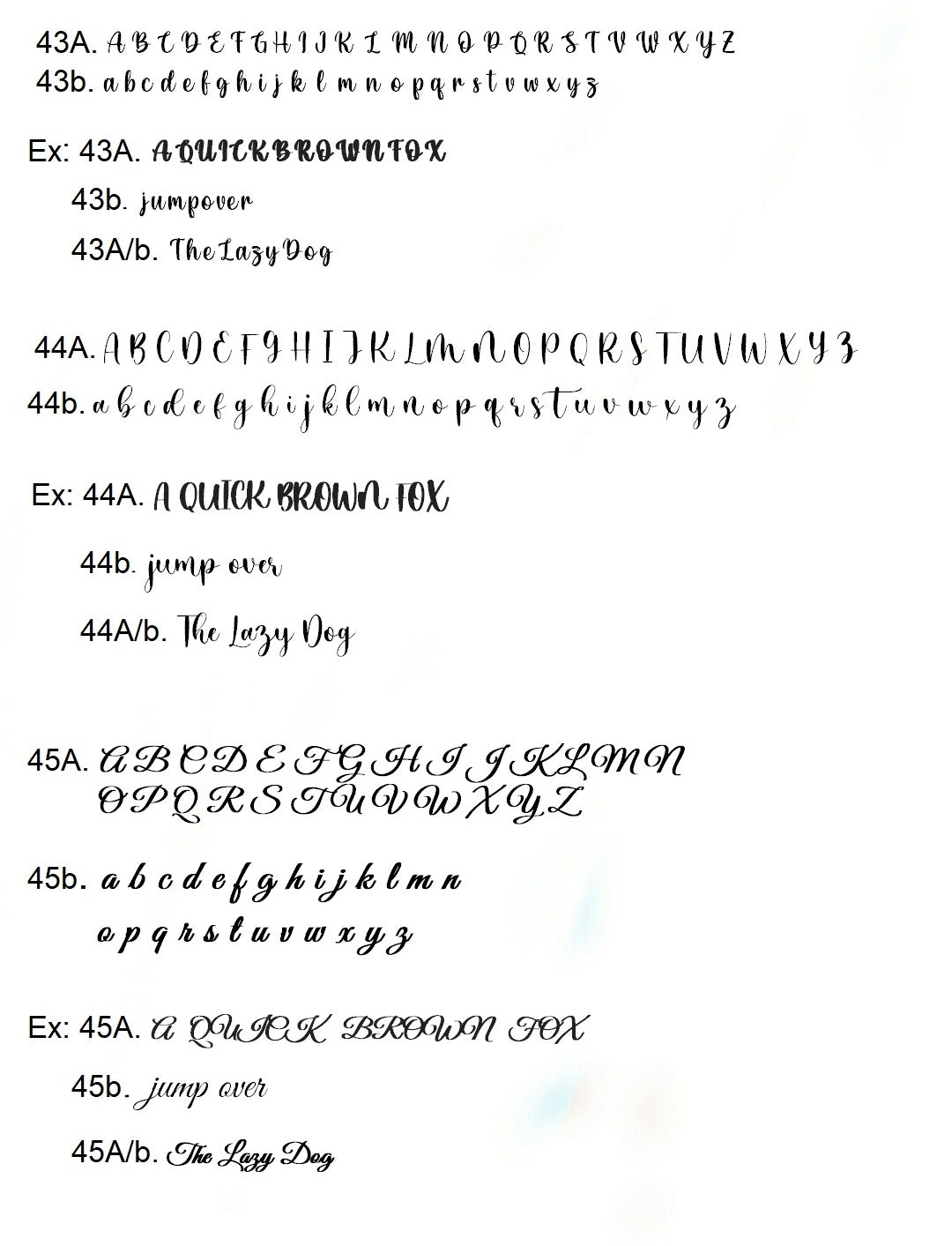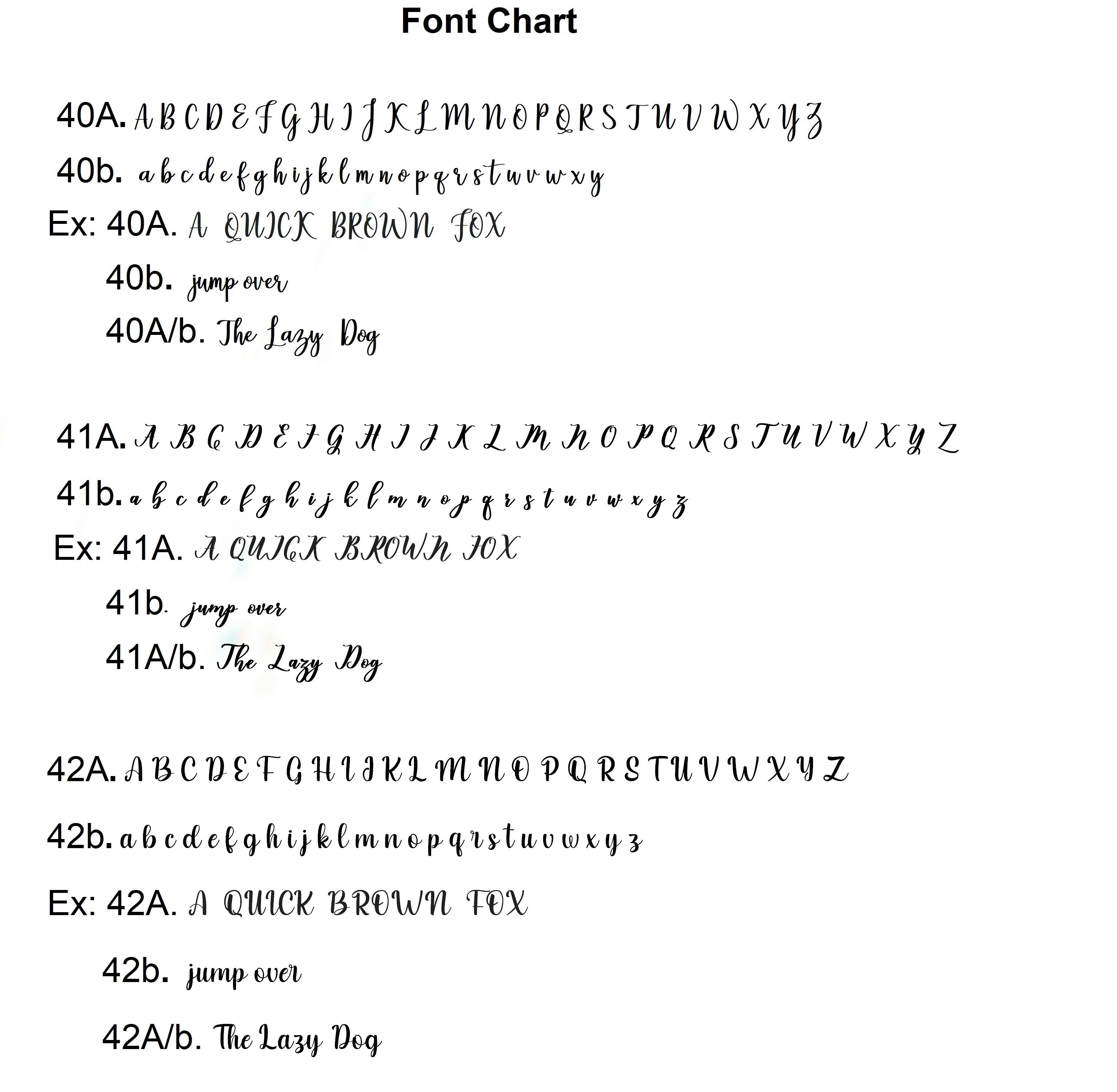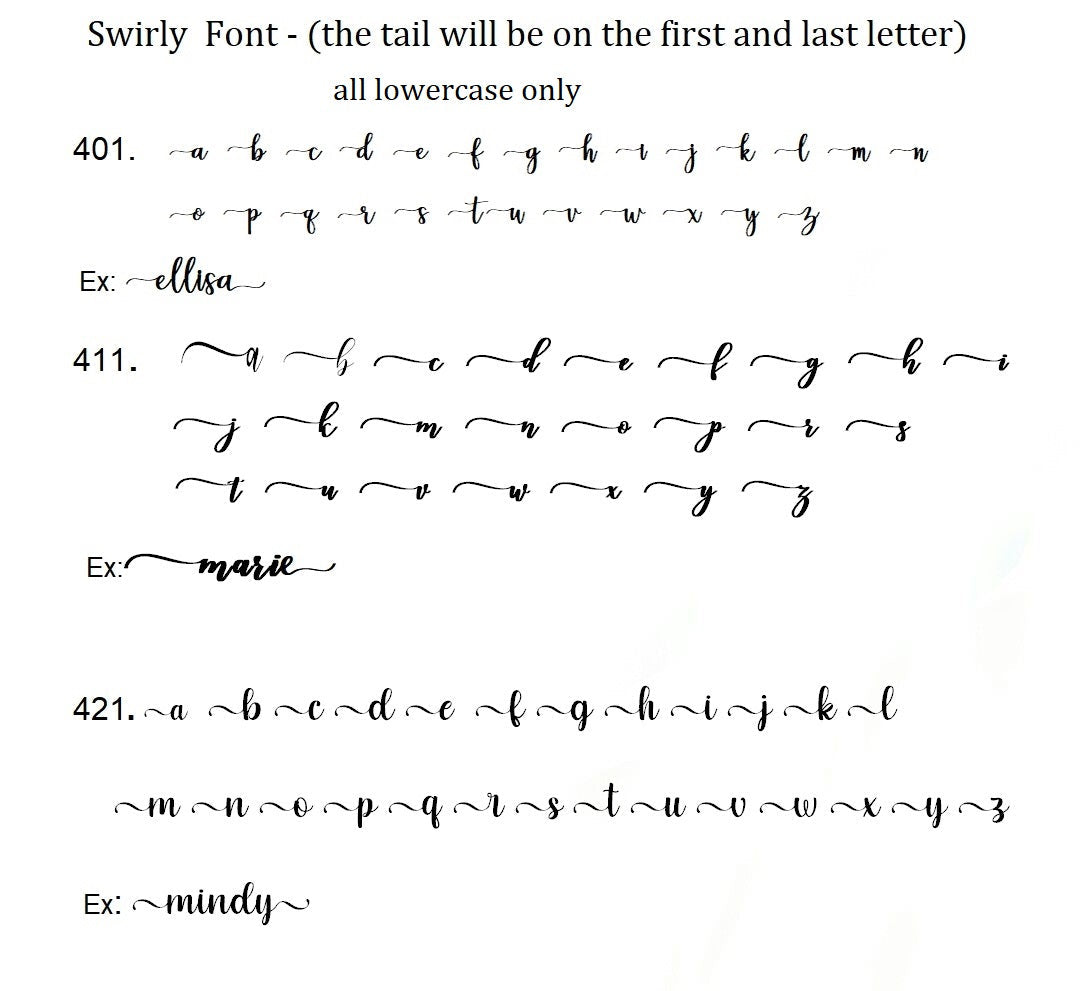 Which font number do you prefer for your characters? Font #401 (lowercase only) as used in the first sample picture is the default if you do not mention otherwise.