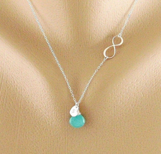 Personalized Infinity Necklace, Initial Necklace, Birthstone Necklace, Heart Charm Jewelry, Bridesmaid Gift, Mothers Day Necklace