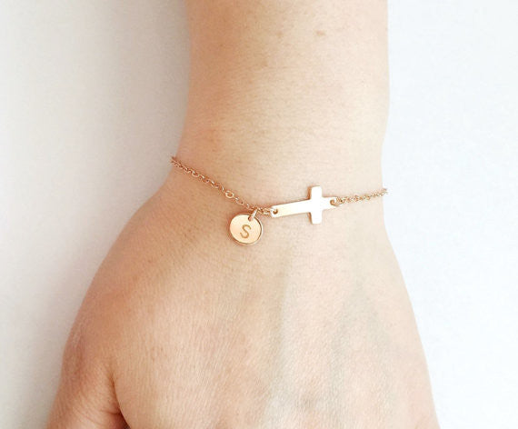 Cute personalized bracelet for couples, cross bracelet gold, cross bracelet sideways