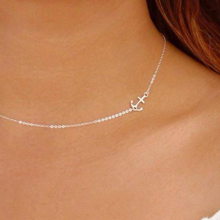 Small Delicate Sideways Anchor Pendant Necklace, Silver Nautical Jewelry, Rose Gold Anchor Jewelry, Thin Gold Chain, Necklace with Anchor, Cute Necklace for Girlfriend