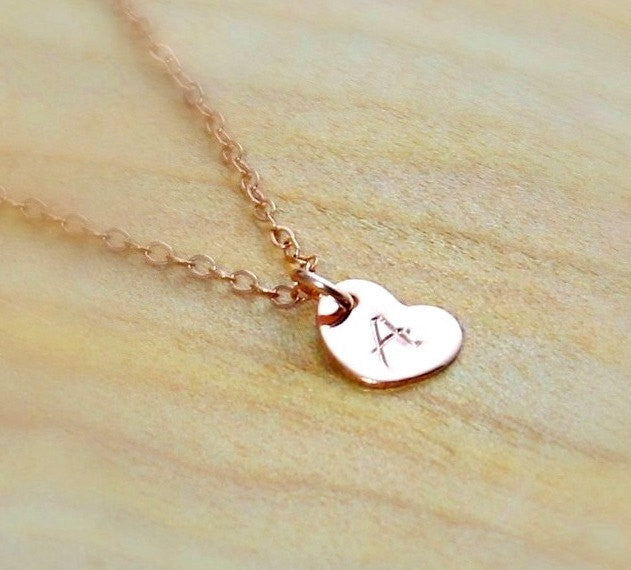 Initial Rose Gold Heart Necklace, Tiny Pink Monogram Heart Charm Necklace, Bridesmaid Necklace, Sister Jewelry, Flower Girl Gift, Gold heart necklace, Heart necklace silver, Personalized necklace for mom